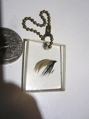 VINTAGE UNKNOWN MAKER LUCITE FLY FISHING THEMED KEYCHAIN W/ COOL WET FLY INSIDE