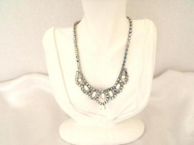 BEAUTIFUL VINTAGE AB RHINESTONE MILK GLASS NECKLACE