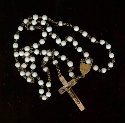 Antique White Milk Glass Beads Heighlight This Rosary