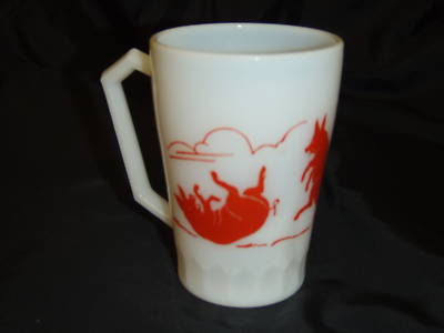 HAZEL ATLAS THREE LITTLE PIGS MILK GLASS CHILDRENS CUP
