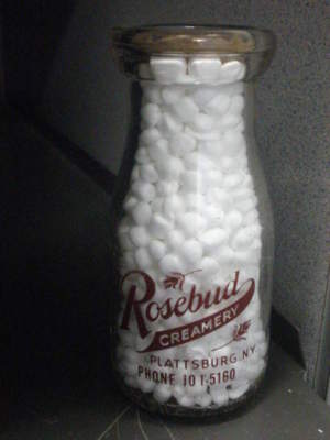 VINTAGE 1/2 PINT MILK BOTTLE ROSEBUD PLATTSBURG NY