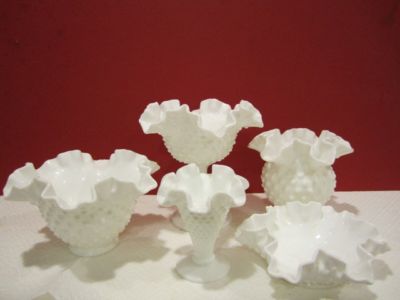 5 Fenton Milk Glass/Hobnail/Vase/Dish/Bowl