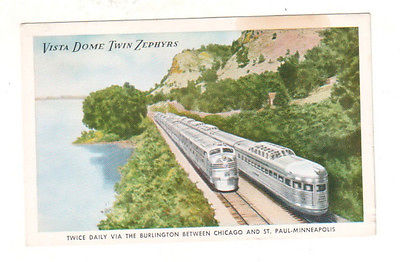 Title (ebay affiliate link): Burlington Route~Vista Dome Twin Zephyrs~Railroad~Postcard~M34