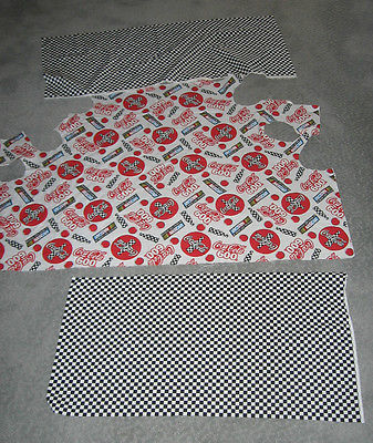 COCA COLA, NASCAR, BLACK CHECKS FABRIC REMANTS