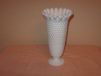 FENTON? 81/2" TALL CRIMPED HOBNAIL MILK GLASS VASE