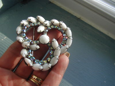 VINTAGE MILK GLASS &AB STONE BROOCH