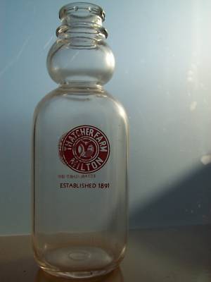 Vintage Old Milk Bottle Red Pyro THATCHER FARM MILTON