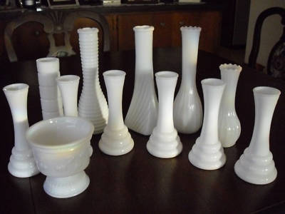 Vintage Milk Glass Vases Lot of 12 Wedding/Party Decor