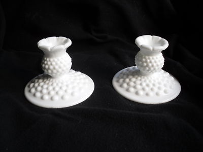 set of 2 pillar candle holders made of white milk glass