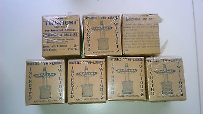 7 x Vintage Boxes Twi Light Burners & Mantles for Inverted Fittings Gas Lamp Oil