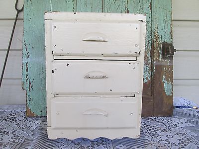 ANTIQUE PRIMITIVE HANDMADE WOODEN CHILDS DOLL DRESSER OLD WHITE PAINT