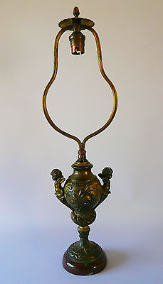 Antique 19th century French lamp, cast metal, Rococo cherub decoration, marble