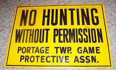 Vintage original sign NO HUNTING Portage, Ohio Fish & Game embossed metal nice