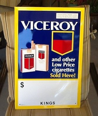 Title (ebay affiliate link): VINTAGE NOS EMBOSSED METAL Viceroy Cigarettes Tobacco Tin ADVERTISING SIGN kool