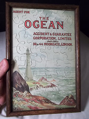1930s The Ocean Accident & Guarentee Insurance LONDON Advertising Wooden PUZZLE