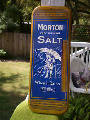 Title (ebay affiliate link): Morton Salt Tin Thermometer Chicago Plaque Sign Wall Mount Metal Reproduction