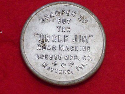 POCKET ADV. SHARPENING STON WITH METAL CAP/ UNCLE JIM ROAD MACHINE/ MATTOON ILL.