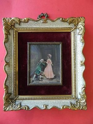 Genuine Hand Painted Miniature Portrait Painting Courtesan Scene Italy 1900s