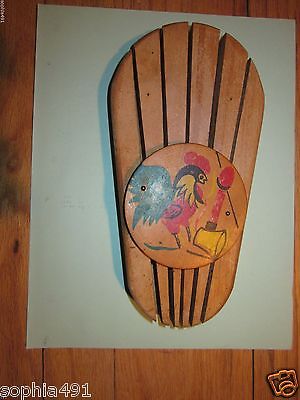 VINTAGE WOODEN ROOSTER WALL RACK KNIFE HOLDER-1950'S