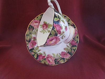 Queen Anne Black Magic Fine Bone China England Pink/Red Roses footed Cup Saucer