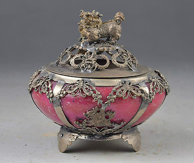 Title (ebay affiliate link): Chinese Tibet Silver Red Jade Dragon Butterfly Incense Burner Kirin Lid