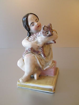 Antique French Vieux Old Paris Girl & Cat porcelain figure figurine 1850-1900