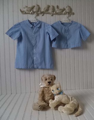 Vintage Antique 2 Pc Baby/Child Doll Clothes Blue Cotton Monogrammed "A" Dress