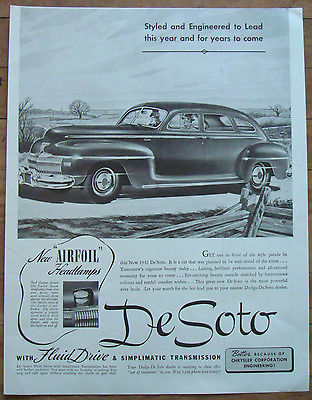 Title (ebay affiliate link): STUNNING 1942 CANADIAN DE SOTO CAR AD CANADA AIRFOIL HEADLIGHTS DESOTO
