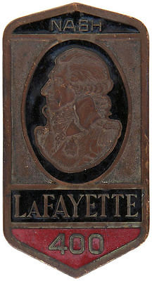 ENAMEL AND BRASS NAMEPLATE FROM AUTOMOBILE LAFAYETTE 400 BY CAR MAKER NASH.