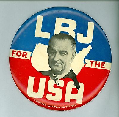 Title (ebay affiliate link): Vintage 1964 President Lyndon B Johnson Political Campaign 6" Pinback Button LBJ