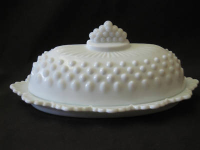 FENTON VINTAG MILK GLASS HOBNAIL BUTTER DISH DOMED LID