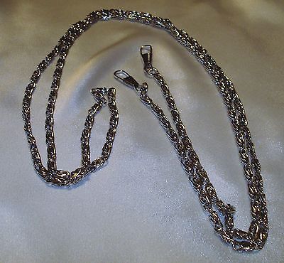 vtg silver tone 46" long zig zag chain link fob or keychain clips on both ends