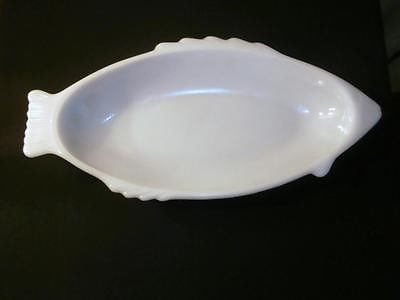 GLASBAKE VINTAGE WHITE MILK GLASS FISH SERVING PLATTER PLATE BOWL