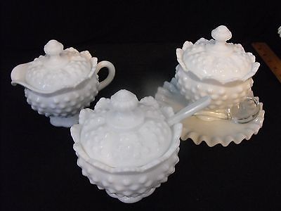 Fenton Hobnail White Milk Glass Creamer Sugar Jelly Bowl lidded used