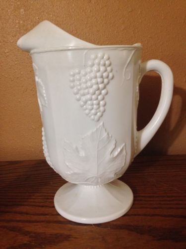 Vintage White Milk Glass Pitcher Mid century Grape design