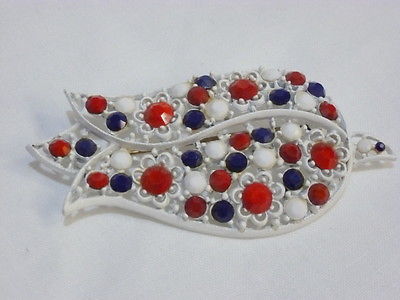 Title (ebay affiliate link): VINTAGE WHITE ENAMEL TULIP BROOCH WITH RED/WHITE/BLUE MILK GLASS RHINESTONES