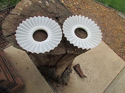 Pair of Vintage white milk glass crimped edge light shades