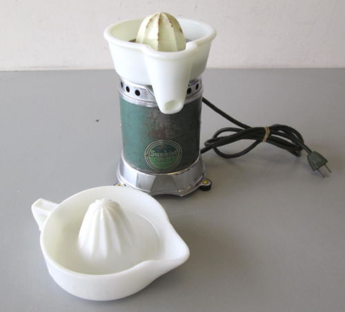 Title (ebay affiliate link): Vintage Sunkist JUICIT Electric Juicer w/White Milk Glass Bowl & Hand Reamer