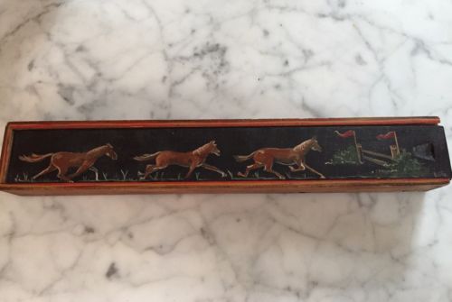 Folk Art Antique Dovetailed Painted Box Horses & Signed