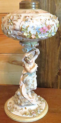 ANTIQUE FRENCH Handpainted Porcelain Lamp W/Dancing Figures, Very Fine Gold Work