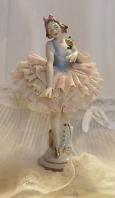 ALKA Kunst Crana Renale Dresden Porcelain Lace Ballerina Figurine 6 1/2" H
