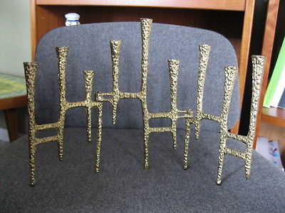Title (ebay affiliate link): Mid-Century Modern Golden Metal Brutalist Israeli Menorah Candleholder Beautiful