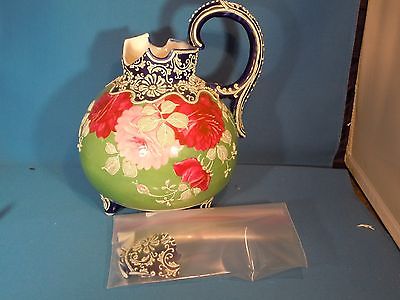 Lg Nippon Footed Pitcher Moriage Accents Cobalt Blue OOPS