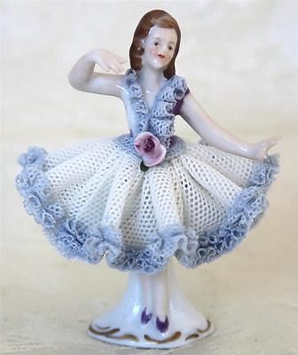 Antique/vtg Signed Dresden Lace little Dancer Ballerina Figural Figurine blue