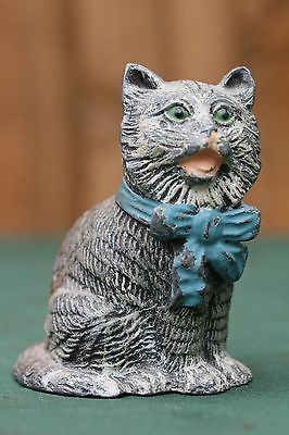 Title (ebay affiliate link): SUPERB 19thC SEATED SPELTER CAT FIGURE WITH GREEN EYES & BLUE BOW c1880s