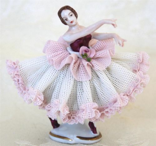 Title (ebay affiliate link): Antique/vtg Signed Dresden Lace little Dancer Ballerina Figural Figurine Pink