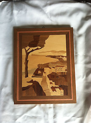 Vintage Inlay Wood Marquetry Wall Art Italian Coastline