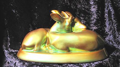 ZSOLNAY EOSINE GLAZED FIGURINE "LAYING DEER" C. 1920