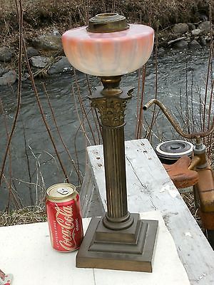 ANTIQUE PINK OPALESCENT MESSENGER CORINTHIAN OIL LAMP 17 1/2" TALL