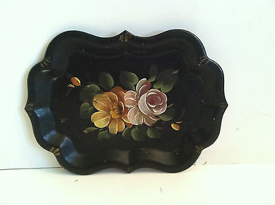 Small Vintage Toleware Painted Black Tray Beautiful Colors